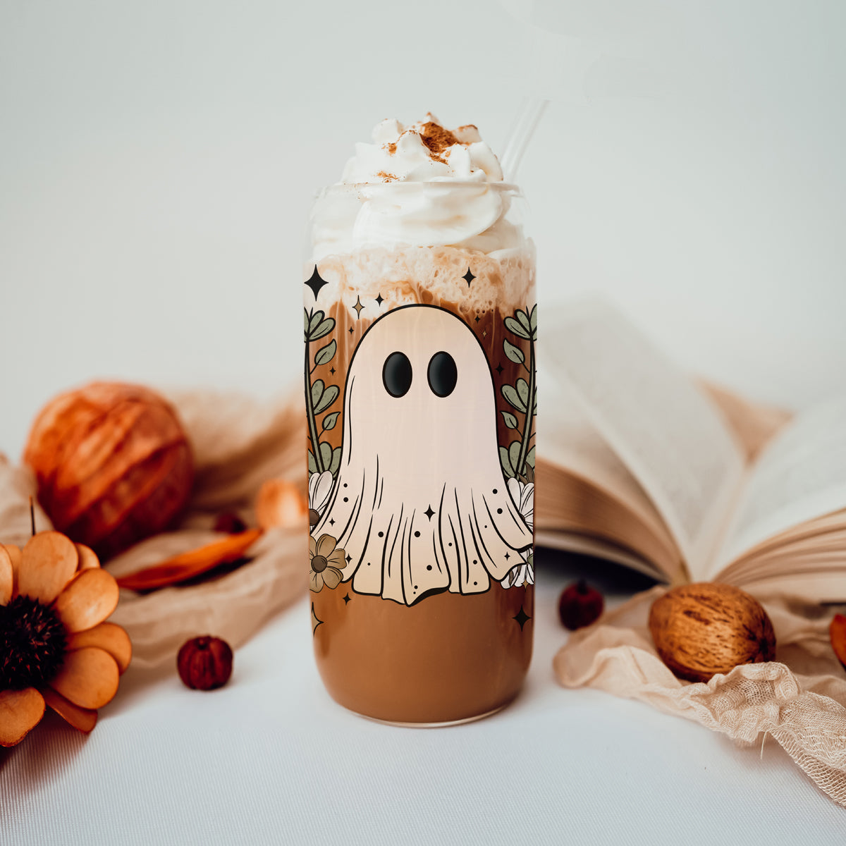 Meet the tumbler that's giving "ghost in a wildflower meadow" energy! For everyone who wants their Halloween aesthetic to be less "blood and gore" and more "drinking tea with a friendly ghost in grandma's garden."