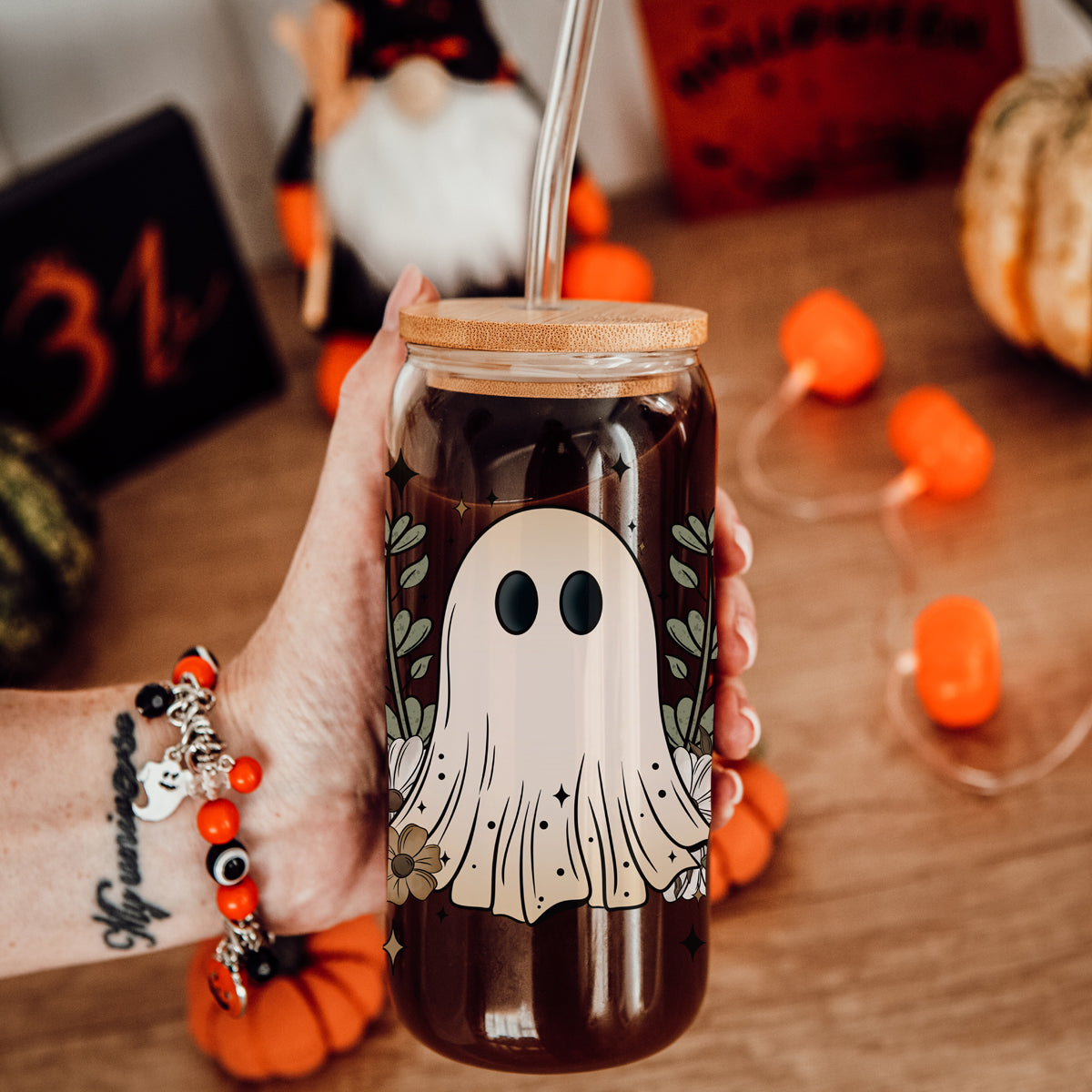 This 20oz glass beauty features a whimsical collection of garden-loving ghosts, buzzing bees, dreamy butterflies, and magical mushrooms - because who says spooky can't be cottagecore cute? It's basically what would happen if a ghost decided to start an herb garden (and honestly, we're here for it).