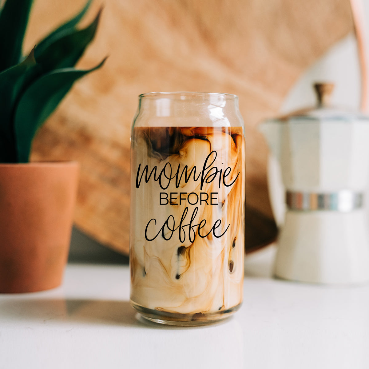 Meet your new morning survival kit - the 20oz 'Mombie Before Coffee' glass tumbler, because sometimes being a mom means being a zombie until that sweet, sweet caffeine kicks in!