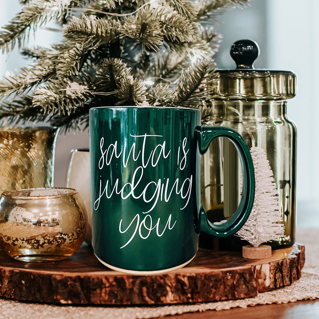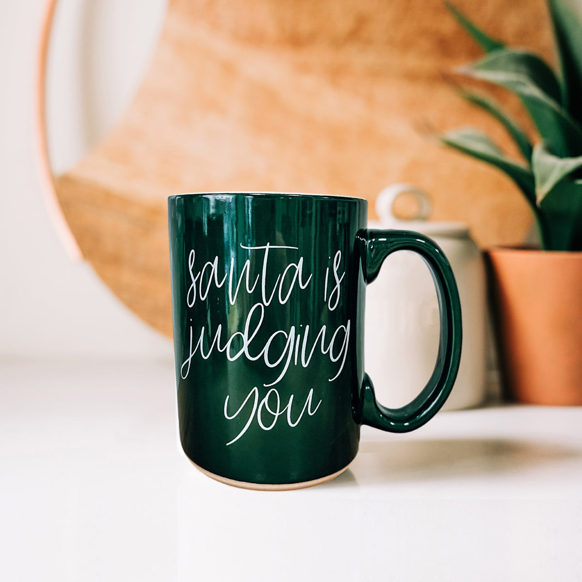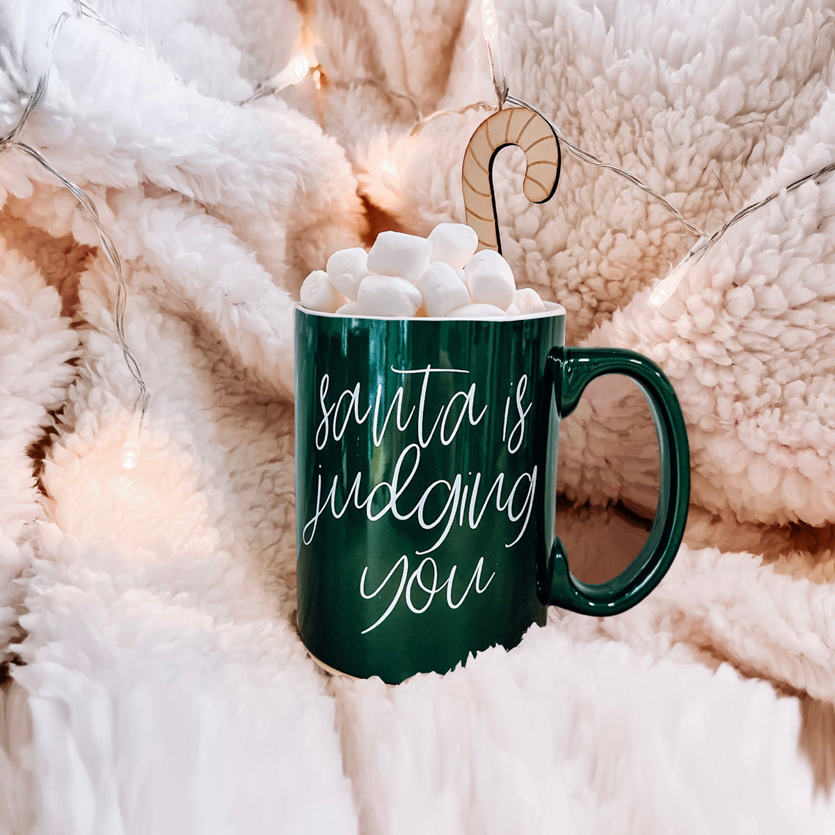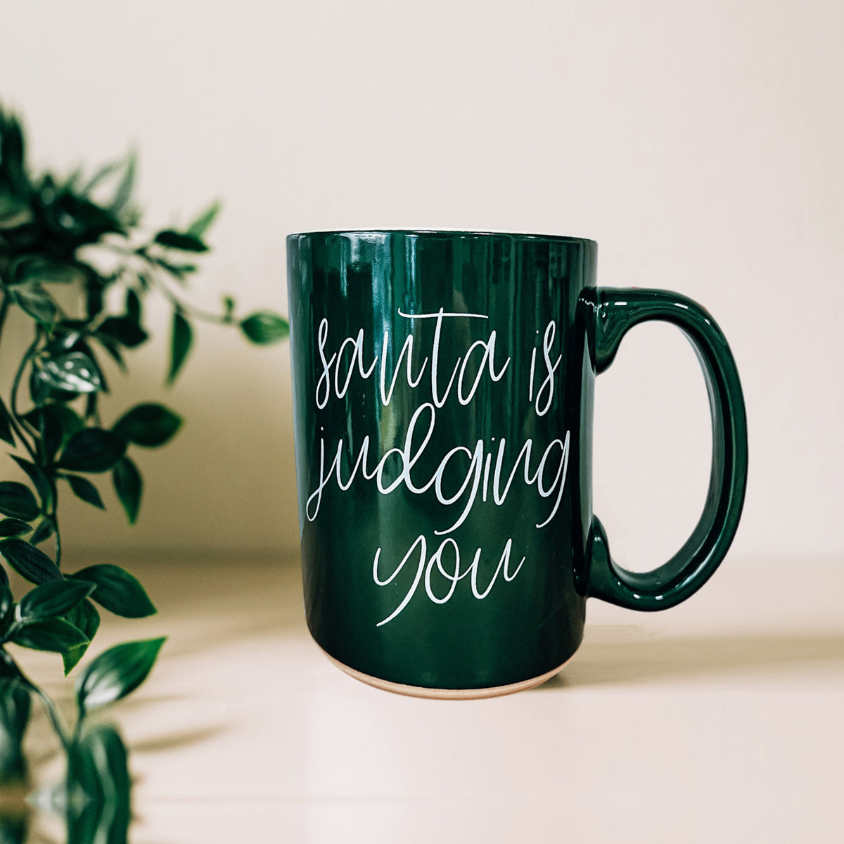 Grab one for yourself or gift it to that friend who’s always on the edge of the naughty list. Because, let’s be honest, a little festive judgment from the big guy in red never hurt anyone… right? 🎅☕
