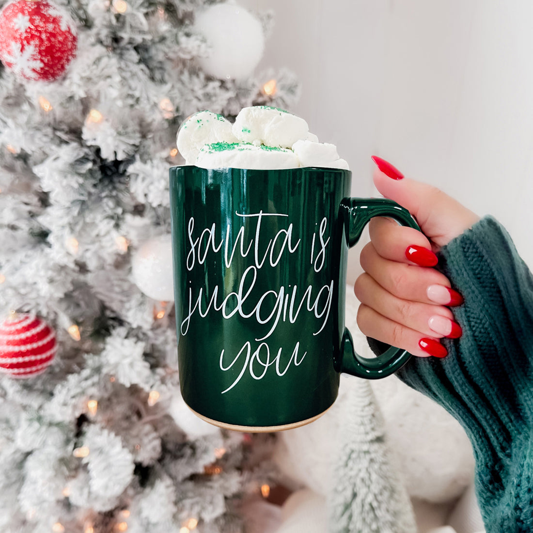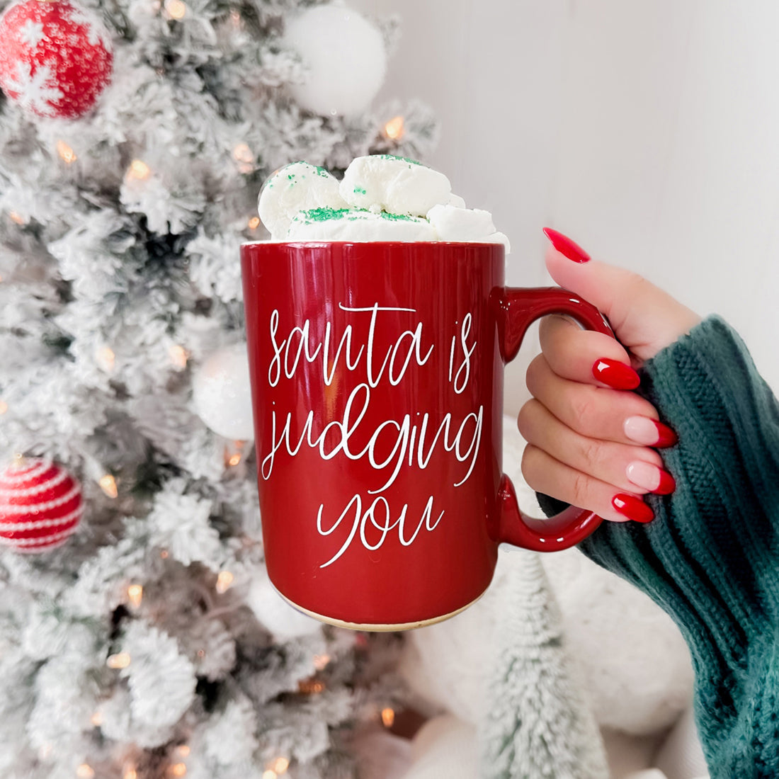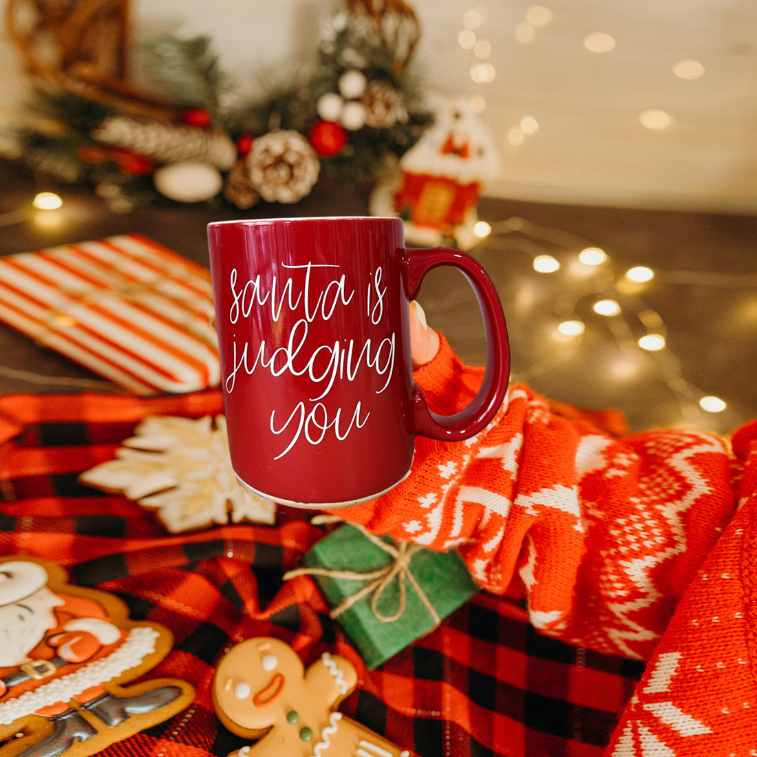 Feeling a little extra naughty this holiday season? Worried that Santa’s keeping an extra close eye on your cookie consumption? Our "Santa Is Judging You" Christmas Ceramic Coffee Mug is here to add a cheeky twist to your festive fun!