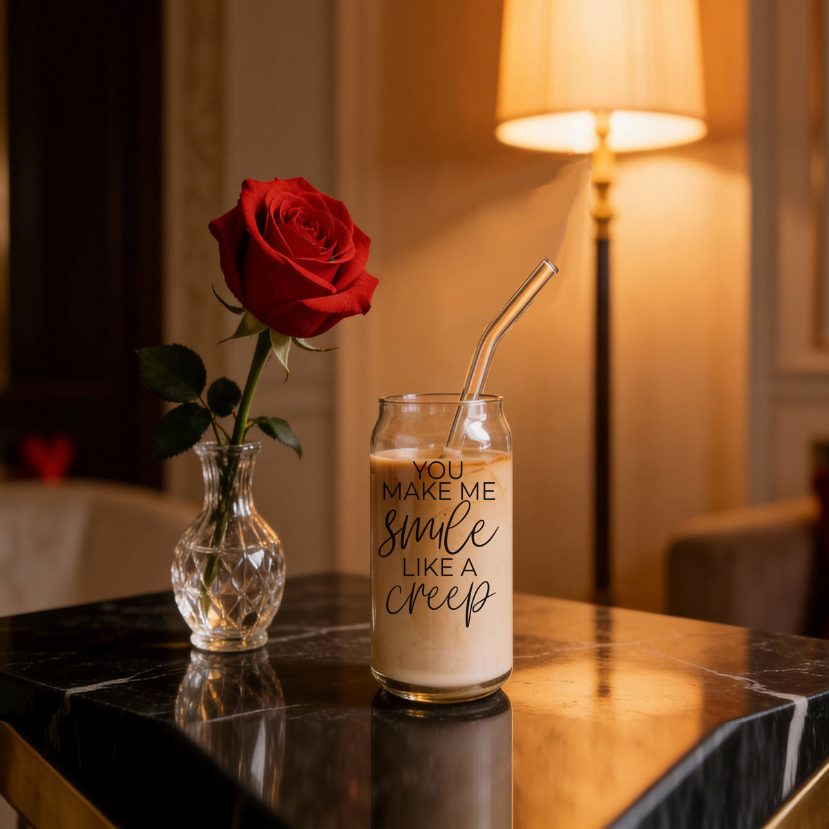 Sip with a side of sass! This 20oz glass cup hilariously proclaims āYou Make Me Smile Like a Creep,ā because letās face it, we all have those moments when we canāt help but grin a little too wide. Perfect for those cheeky moods when you just canāt contain your inner weirdo!