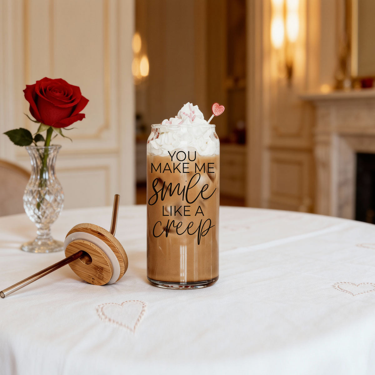 šĀ You Make Me Smile Like a Creep Glass Cup with Bamboo Lid š