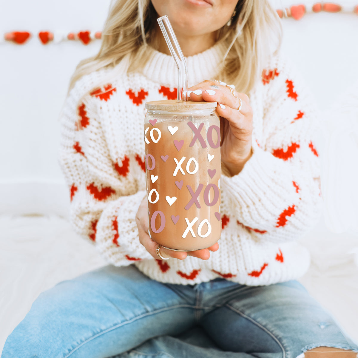For the days when you want to stay hydrated and adorable, here’s the ultimate love-letter-in-a-cup! This 20oz glass beauty is fully wrapped in pink and white "XOXO"s for maximum hug-and-kiss vibes, complete with a bamboo lid and matching glass straw for sippin’ in style.